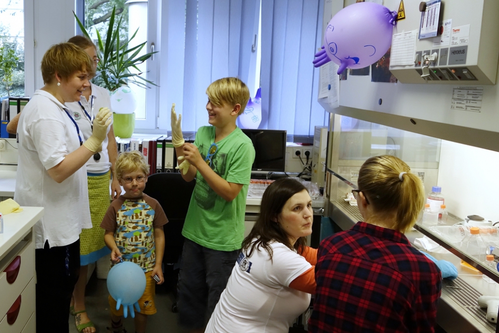 In celebration of the 60th Anniversary of University Medicine in Magdeburg, the many institutes and clinical departments opened their doors.  In the laboratories of the Institute of Molecular and Clinical Immunology, there was a lot going on.  The doctoral students of the MGK 854 worked hard to offer the many visitors an exciting program.
